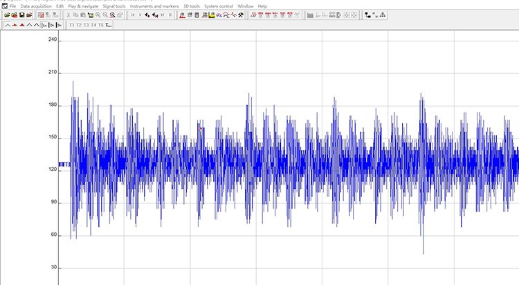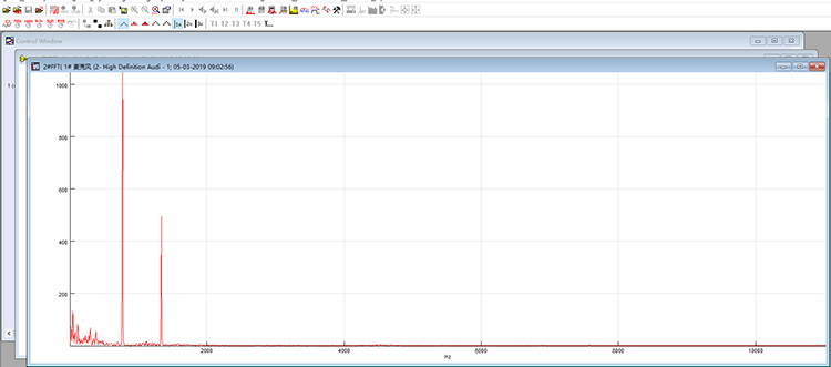 该软件内部击沉FFT算法,可以将采集的声音信号从时域转换为频域可轻松进行观察和比较结果。同一个按键声多次重复采集后转换到频域,会表现出明显的频域特特征如下图所示: